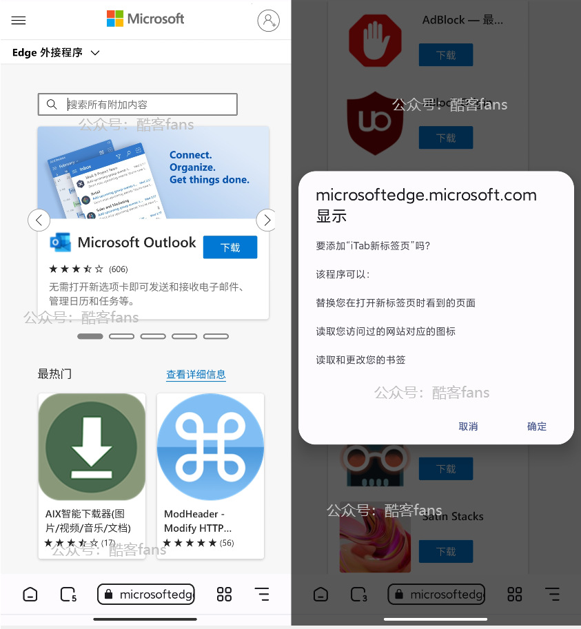 安装浏览器插件也比较简单,你只需要进入Chrome或者Edge插件的仓库,然后搜索你想要的插件,和像电脑上那样,找到插件后确认安装即可。
