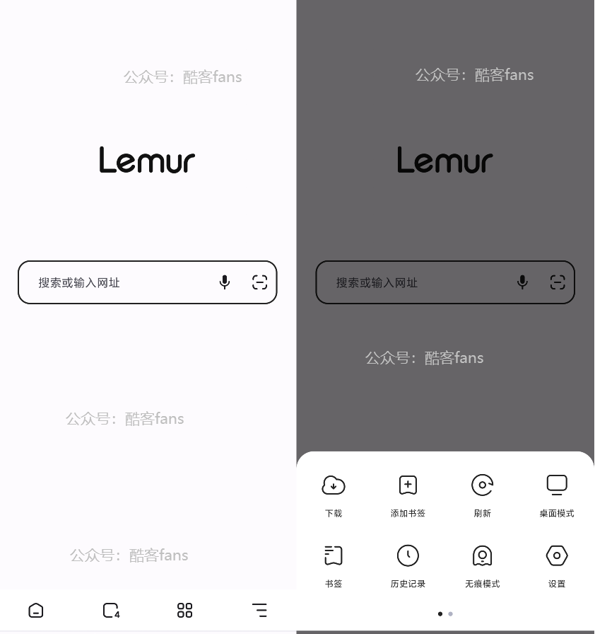 从界面上来说,狐猴浏览器的设计风格类似于夸克浏览器,或者说是类似于开启了简洁版首页的小米浏览器首页。首页比较清爽简单,没有广告推送、信息流新闻。