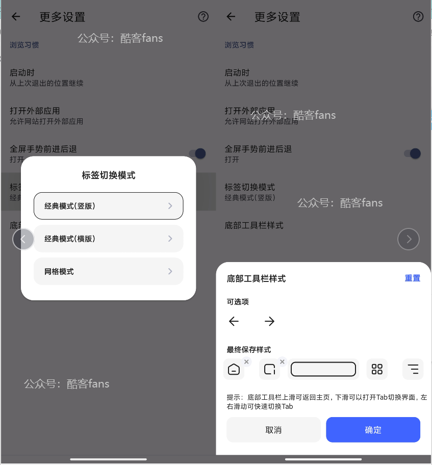 狐猴浏览器的设计语言非常简约,但不像是 Kiwi 浏览器那样有点简陋,你可以把它理解成一个加强版的 Chrome 安卓端浏览器,看得出在界面上做了很多优化,同时也增加了一些浏览器自定义的功能(比如底栏、标签窗口、视频增强等等),因此,对于我这种经常用Chrome、Edge的人来说非常容易上手,有些选项一看就知道它应该在哪里。