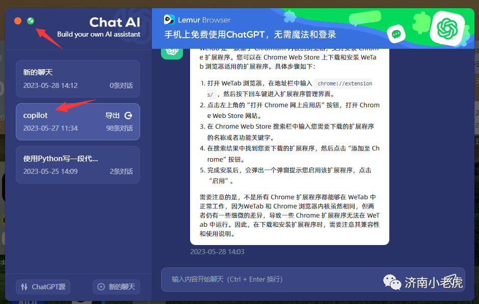首先感谢 神通的 李诺帆老师, 之前一直使用.https://chat.jubianxingqiu.com//chat/1002类似的浏览器进行 中文的ChatGPT的使用.感觉有时候容易卡顿, 并且需要扫码等操作.前几天与李老师沟通时, 被告知还有一个Edge的wetab插件可以使用效果要好很多.这里总结一下, 备忘.需要注意的是1:必须使用chromium内核的edge,部分IE旧内核的需要执行升级才可以。2:需要执行一次注册和登录,这样就可以使用。3:左下角可以切换chatGPT的源。可以根据自己的需求进行切换。4:结果仅供参考,一定要测试才能够上生产。打开edge浏览器,并且打开插件管理