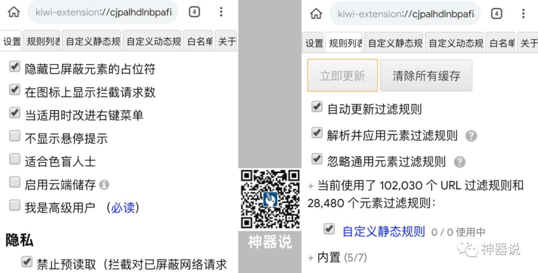原来电脑Chrome浏览器能做的事情,现在都可以照搬到手机端上来了。(当然也不一定,比如一些针对PC端网页美化的插件)