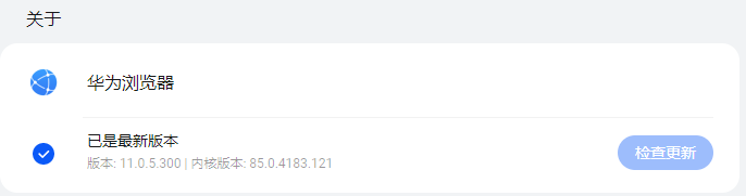 首先跟Chrome、Edge一样,华为浏览器同样是基于Chromium内核,目前浏览器最新版本内核为85版本,和Chrome和Edge相比,都是有差距的,但对比其他的众多国产浏览器来说,也算是比较新的了。