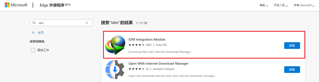 同时打开Edge浏览器,此刻它会弹提示说发现IDM插件,这里允许它加入到插件就好啦,如果没有弹出来的话,那就去微软插件商店搜索idm下载就行~