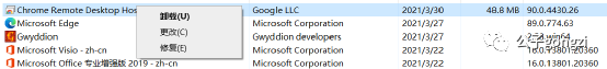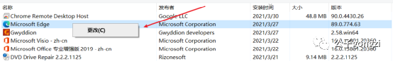 一般的软件都会同时具有【更改】、【卸载】、【修复】三个选项,如下图的chrome,但是新版的 Edge 没有;