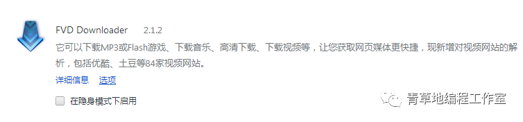 FVD Downloader,这款插件让你下尽网络音视频,只要是你能听或者能看的,在你听或者看的时候,点击这个图标,保存,音频或者视频就下载下来了。这个插件chrome商店已经下架了,360独享