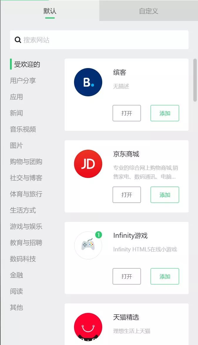 Infinity 还有一个好处,是提供添加常用网址到首页图标,让你像打开手机 app 一样打开网址,方便、快捷。比如你可以把微信公众号、百度网盘、知乎等常用网址添加到首页图标。当然,只是自定义添加。