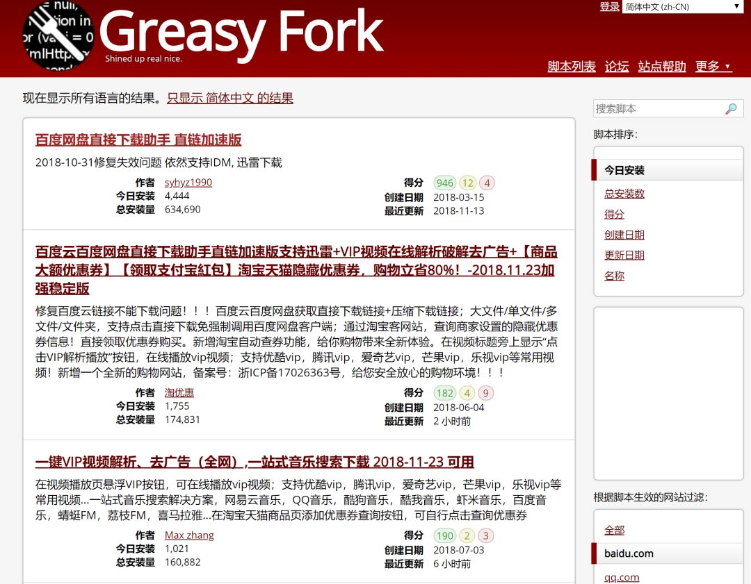 这些脚本你可以去网站 Greasy Fork 下载。