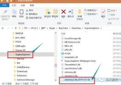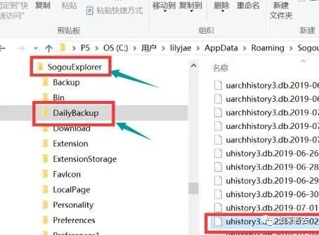 进入界面,左侧栏点击sogouexplorer/Dailybackup文件夹,在里面找到uhistroy3.db.日期,日期选择前一天的。鼠标点击这个文件,键盘按住CTRL+c。