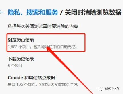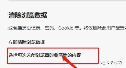 接下来,在右侧清除浏览数据中,点击选择每次关闭浏览器时要清除的内容。如图: