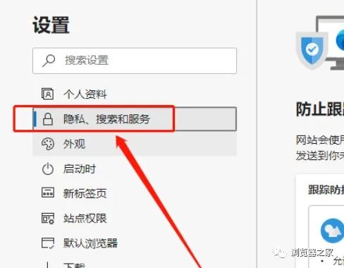 然后,在左侧点击隐私、搜索和服务选项。如图: