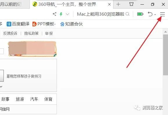 1、首先打开电脑找到360浏览器,打开浏览器后点击右上角的三条杠菜单选项;