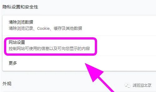 4、进入隐私设置,在右侧点击【网站设置】;