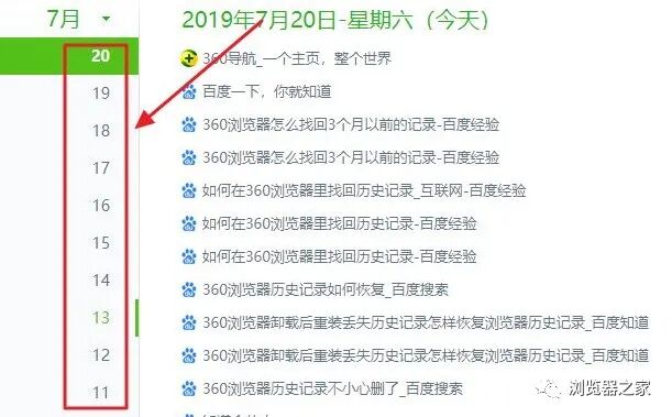 3、最后点击左边的日期就可以进行恢复记录,这样恢复360浏览器历史记录的问题就解决了。