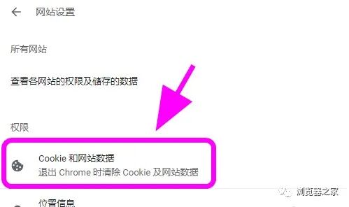 5、在网站设置中找到并点击【cookie和网站数据】;