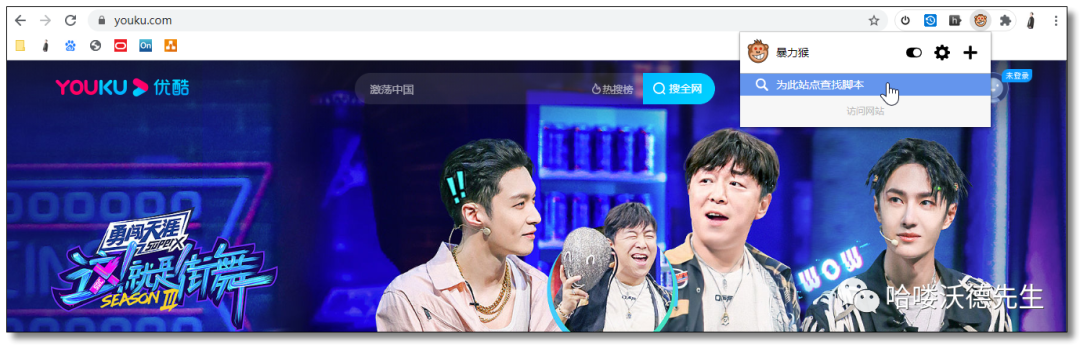 油猴和暴力猴两者任意选择安装其中一个即可,我比较推荐安装暴力猴,因为它多了下面这个功能为此站点查找脚本。暴力猴会根据当前访问的网站搜索到相应的油猴脚本(相比油猴就是它帮你搜索了)。
