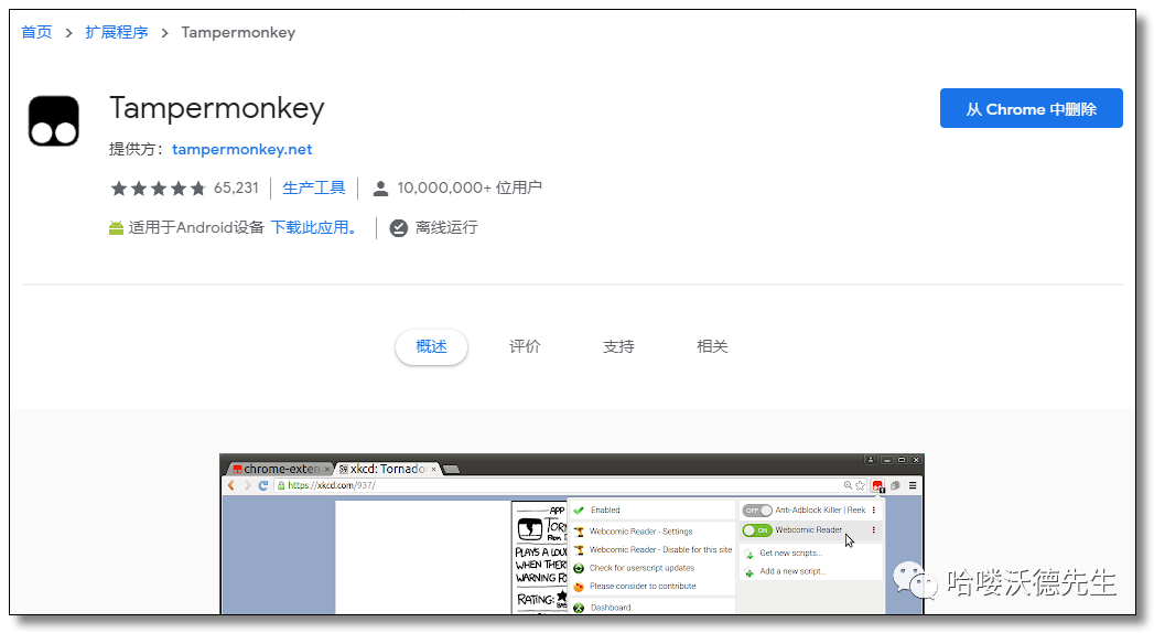 Tampermonkey 是一款基于浏览器的神奇插件,在国内称为油猴,开发者可以在上面开发满足自己需求的各类浏览器应用脚本。不过经过全球各地无数开发者数年的积累现在其官网已经有一大把的优秀的现成脚本,完全可以满足普通用户的日常应用,比如:屏蔽网页广告,网盘全速下载,免费观看腾讯、优酷、爱奇艺等各大视频网站 VIP 电影,免费下载酷狗、腾讯等音乐网站歌曲,免费下载文库文档,领取京东、天猫购物券,购物比价等等。好用到爆炸。