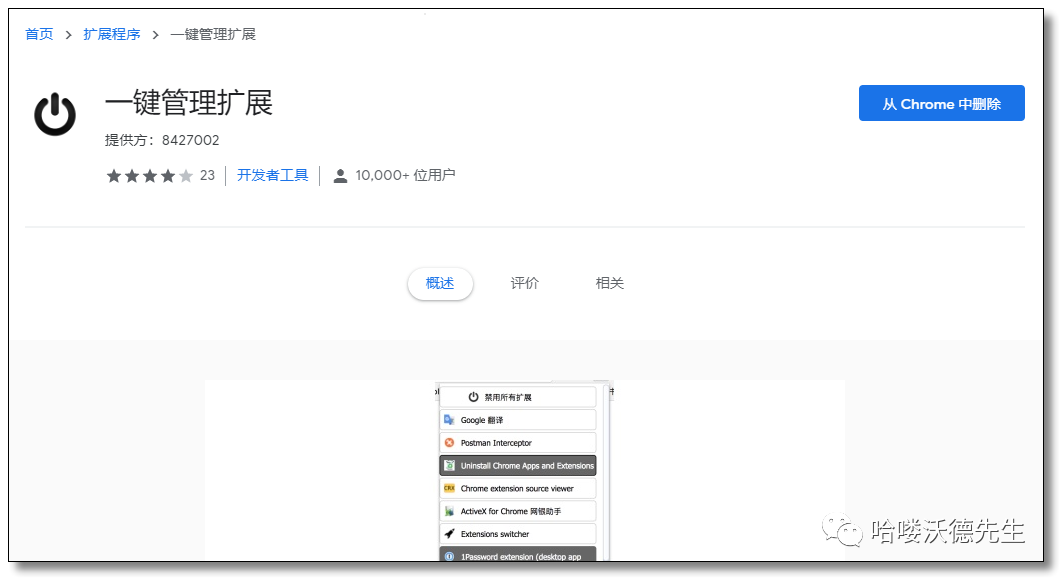 插件安装的越来越多,亟需一个可以管理所有插件的插件。本插件的目的就是为了高效管理你的 Chrome 扩展插件,还你一个纯净的 Web 浏览环境。