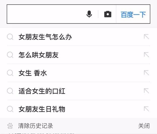 搜索记录倒不全是关于女朋友的,但也多多少少有一些。