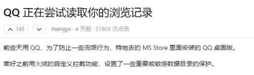1月15日,在 V2EX 互联网论坛上一位名为mengyx的技术员发表了一篇名为《QQ 正在尝试读取你的浏览记录》的帖子。