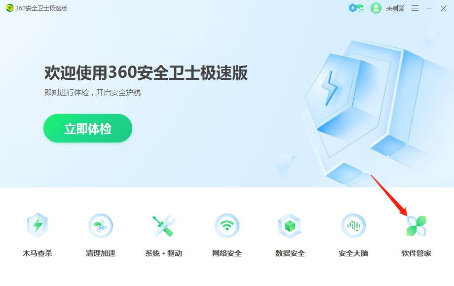 方法一:借助某卫士或某管家卸载软件,本次以360安全卫士极速版为例。