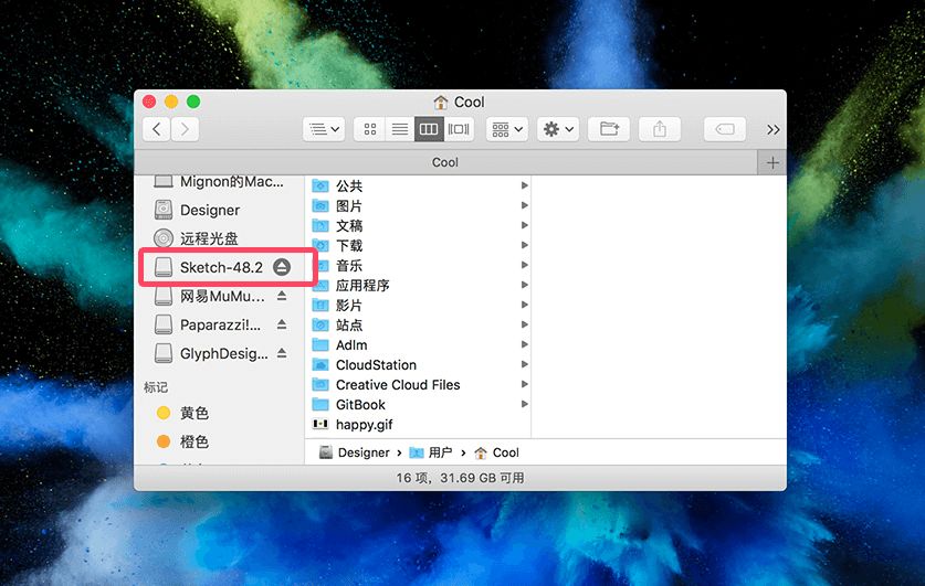 2. 选中 dmg 镜像,按快捷键 command+E 推出;