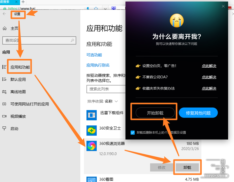 图片 | 彻底卸载360极速浏览器的方法,如图片不能正常显示可打开 https://baiyunju.cc/4544,或点击左下角阅读原文查看。