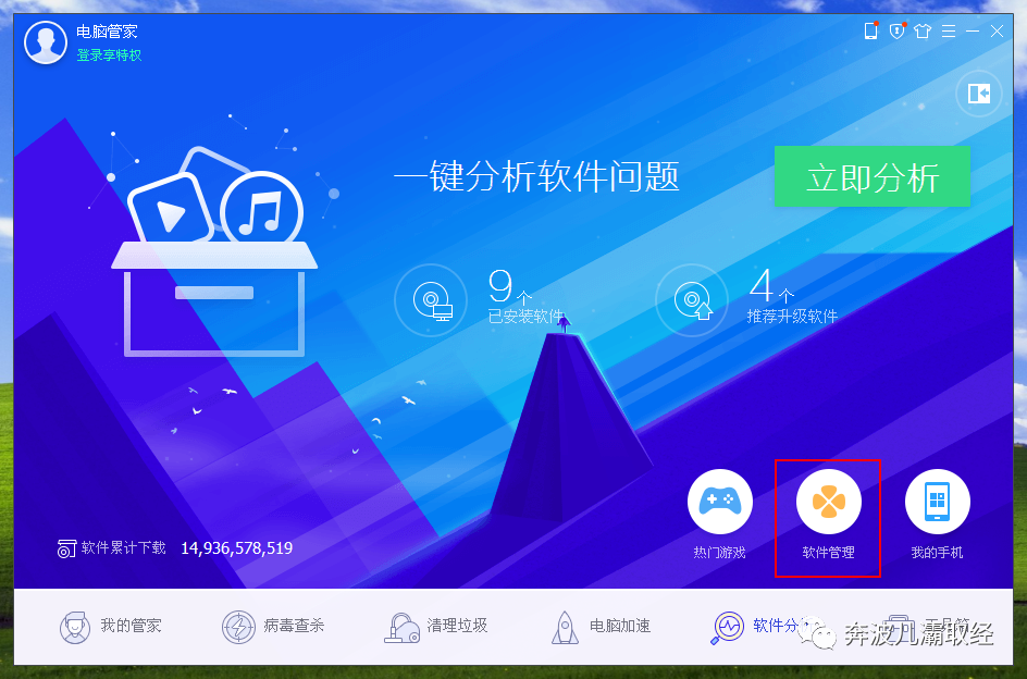 第二种方法:打开运行电脑管家程序依次点击软件管理-卸载。
