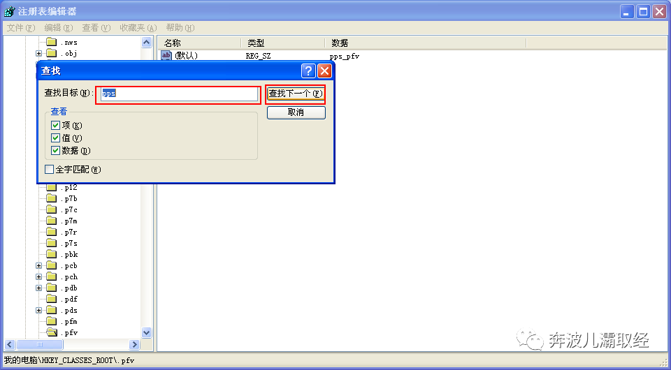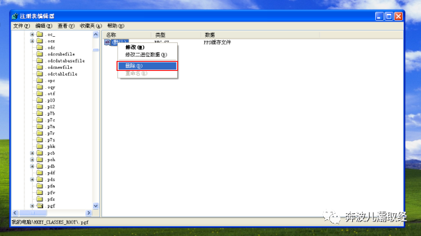 (2)进入注册表编辑器后依次点击编辑-查找,也可以使用快捷键"CTRL+F"键,然后输入软件的关键字然后右键删除相关的选项。