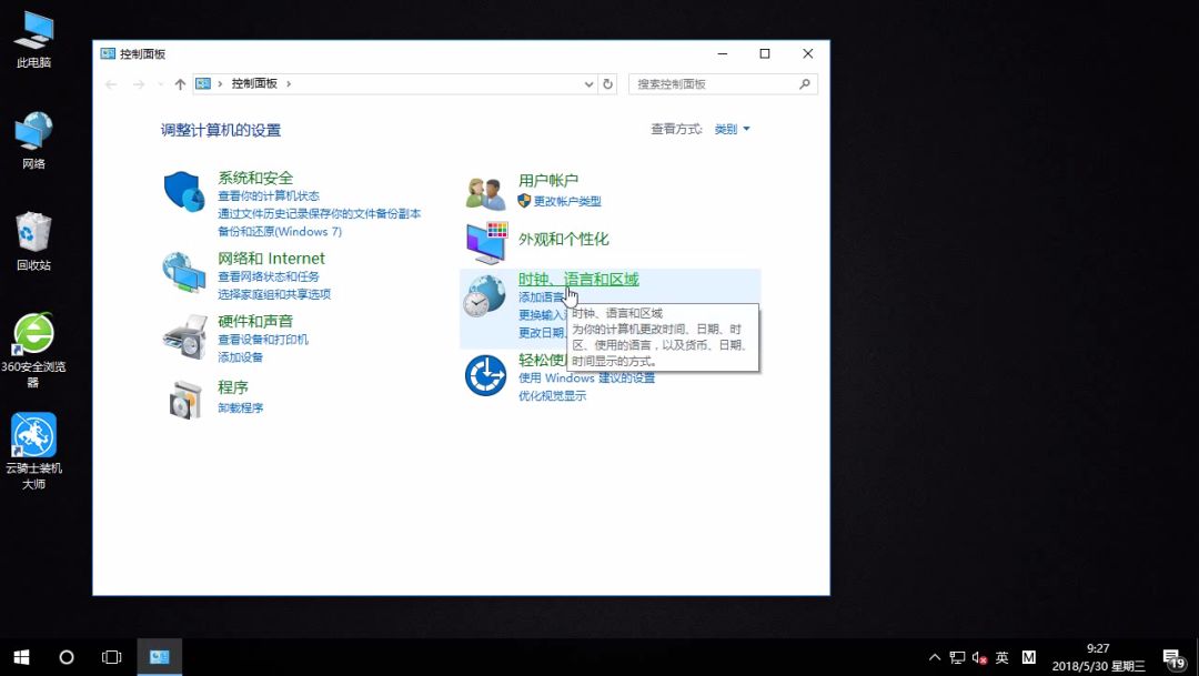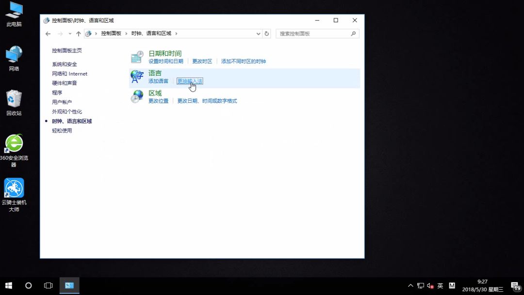 2、接着选择时钟、语言和区域