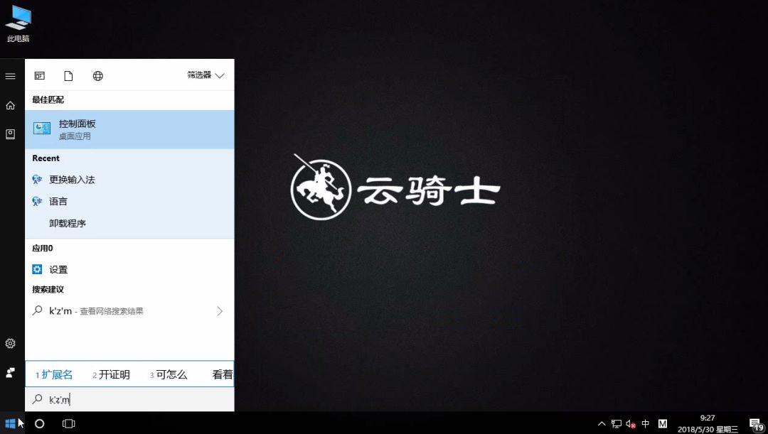 1、在开始菜单中 输入控制面板后打开