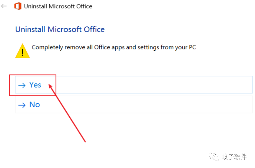 5.问你是否完全移除电脑上所有的办公软件及设定,点击Yes;