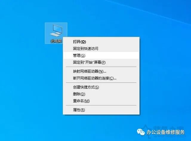 首先我们鼠标右键点击此电脑,在弹出来的菜单中,点击管理,如下图所示。