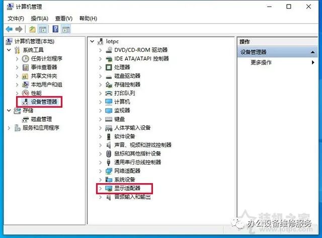 我们点击设备管理器,所谓的显卡适配器就是显卡,双击点击右侧栏中的显示适配器展开,如下图所示。