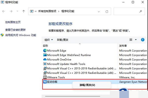 2.程序和功能窗口,找到并选择需要卸载的程序,然后点击【右键】,在打开的菜单选项中,选择【卸载】。