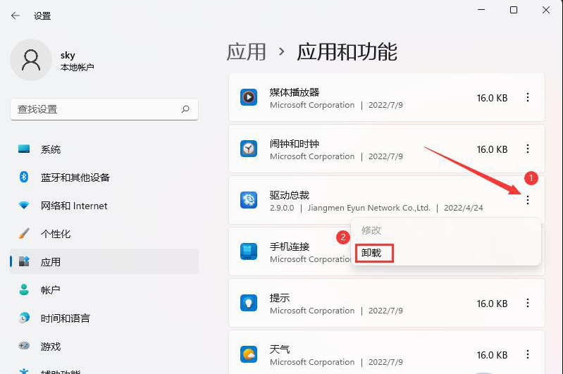 3.当前路径为:应用>应用功能,找到需要卸载的软件,然后点击【┇】,再选择【卸载】即可。