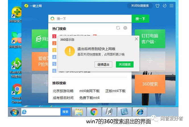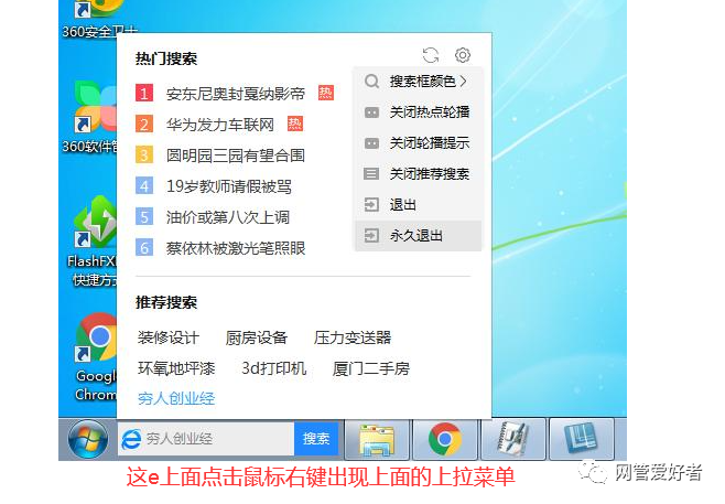 有时候安装360软件后也会自己出现这个类似的放大镜360搜索的图标,这个也可以设置永久关闭,这个更讨厌,还胡乱蹦广告。