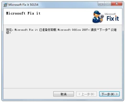 若要自动卸载 2007 Microsoft Office 套件,请单击修复此问题按钮或链接。单击文件下载对话框中的运行,然后按照修复此问题向导中的步骤执行操作。
