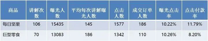 可以看出对排品选品的要求较高,一般参考点击率和转化率。比如下面直播间,大礼包价格低,且曝光和转化都很高,就很适合做A款,巨型零食更适合做F款。