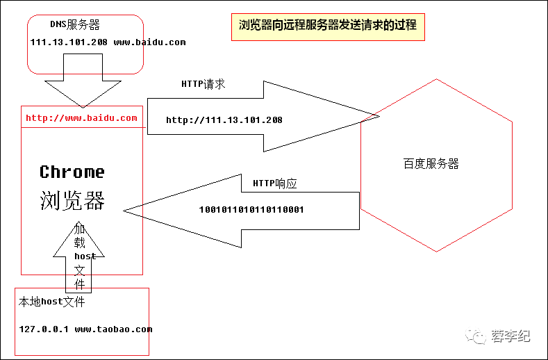Chrome浏览器在启动的时候首先会去加载你本地的host文件,如果URL中的域名在host文件中设置的有对应的IP地址,就会直接将这个域名指向这个地址。如果host中没有URL中输入的域名(baidu.com)对应的IP地址,浏览器就会去访问DNS服务器,向DNS服务器询问这个域名(baidu.com)对应的IP地址。