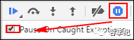 暂停在未捕获的异常处:点击Sources右侧的第六个按钮,不勾选Pause On Caught Exception.