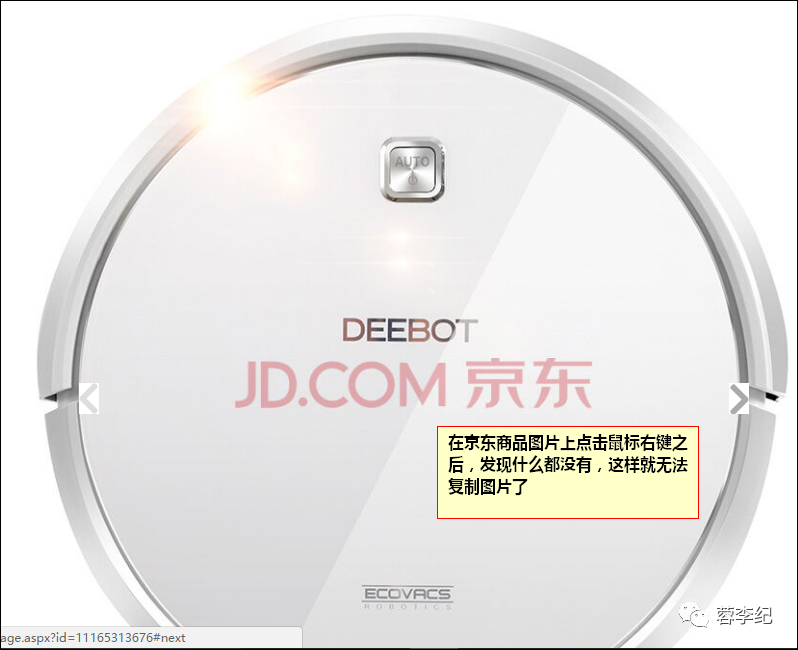 应用场景:在开发互联网电商项目时,需要一些商品图片,于是就去京东找到一个商品打开商品图片之后,想复制或者将这个图片另存为,此时,发现右键后什么都没有。