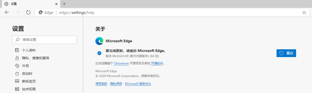 浏览器就会进行自动更新,更新完毕后根据提示重启即可。