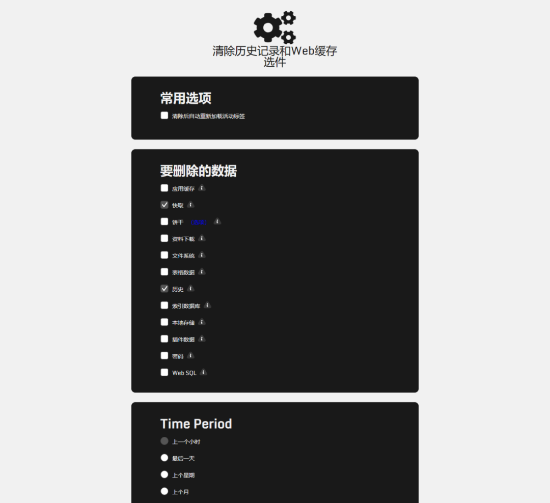 它可以帮助我们一键快速清除浏览器中的数据。并且,我们还可以根据需求和时间段,自己选择想要清理的数据。