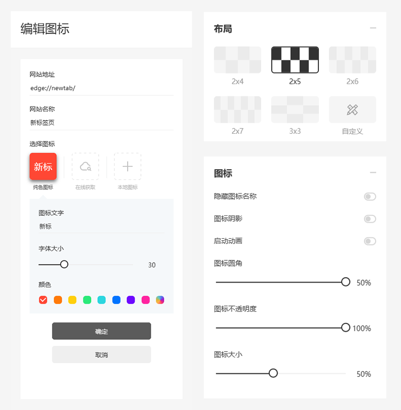 并且,Infinity 拥有极其丰富的自定义选项,我们可以添加网站图标,还可以对图标的大小、颜色、布局等多个项目进行调整。
