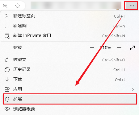 1. 以系统自带的 Edge 浏览器为例,打开并点击右上方的,选择【扩展】--【打开Microsoft Edge 加载项】