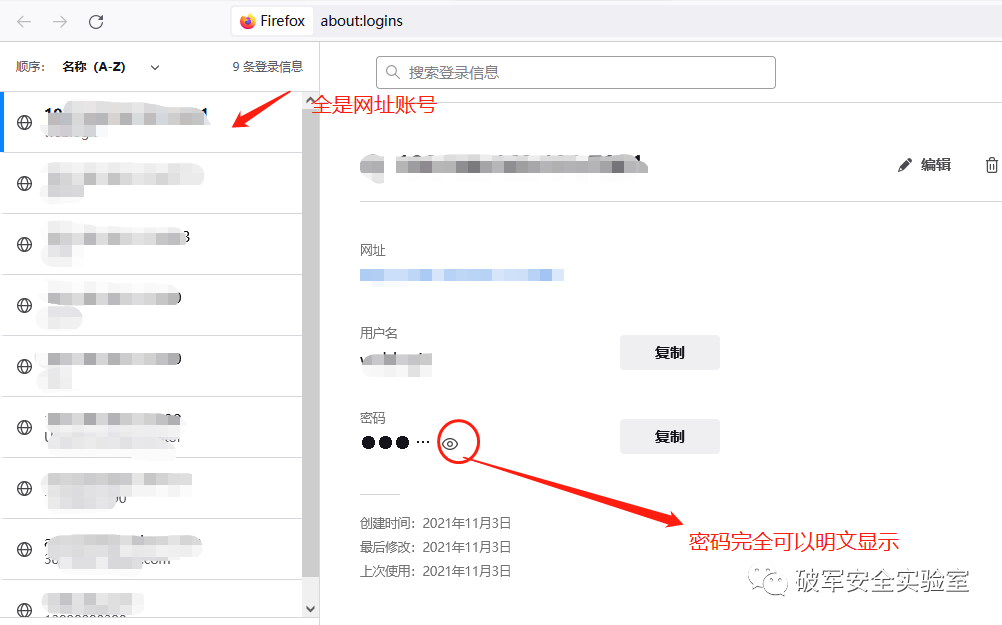 说到记录密码,我们在浏览网站时,登录某些网站时,常常会有窗口提示是否记住密码,这就是浏览器的记录密码功能。因为随着人们上网行为的增加,每个人可能需要注册很多账户,但是人们的精力是有限的,一个人不可能记住太多复杂的账户和密码。这也就意味着,一个人可能重复使用一组账号密码,在多个地方注册;或者是大量弱口令注册。正如我们习惯用电脑输入法打字都快忘记怎么写字一样,保留密码功能也让我们更容易忘记密码。