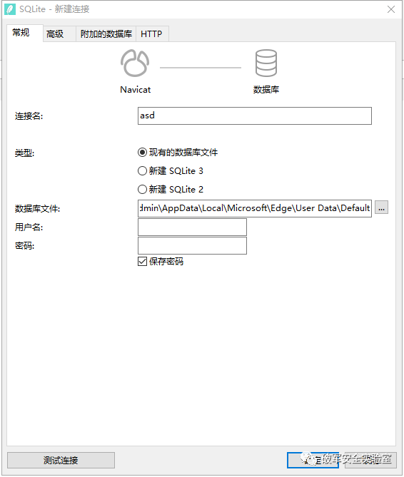找到Login Data这个文件,密码就是存储在这里。这个文件虽然是加密的,但是是SQLite format3格式,可以通过Navicat Premium工具读取。打开Navicat Premium导入Login Data,如下图: