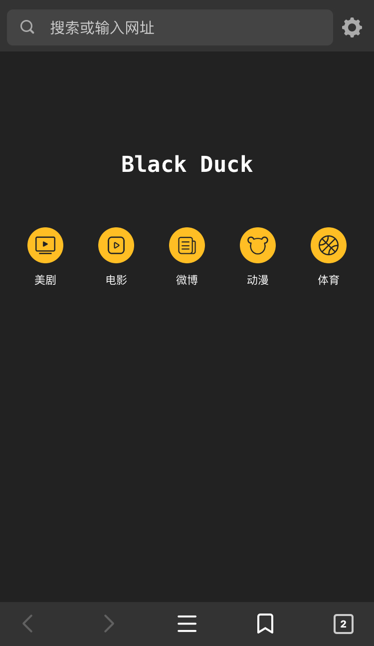 黑鸭子浏览器,它比较清爽,是我没事搜到的,初始界面有好多分类,见上图,不错。