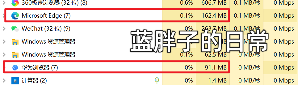 还有另一个比较核心的因素,它的内存占用相对更小,我拿它和Edge做了个对比。