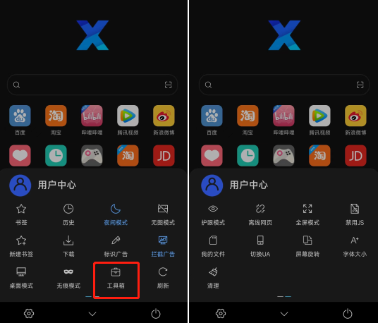 所以今天小布就给大家分享我一直在用的浏览器-X浏览器。文件小巧,整个容量只有1M左右,虽然页面简洁,回归了单纯的搜索界面,没有那么多花里胡哨的界面,功能却特别的强大,广告拦截、嗅探资源等功能应有尽有,下面就简单的介绍一下使用功能。